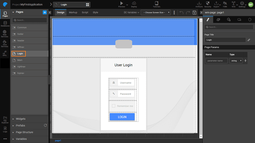 A Login page is added to your app, by default.